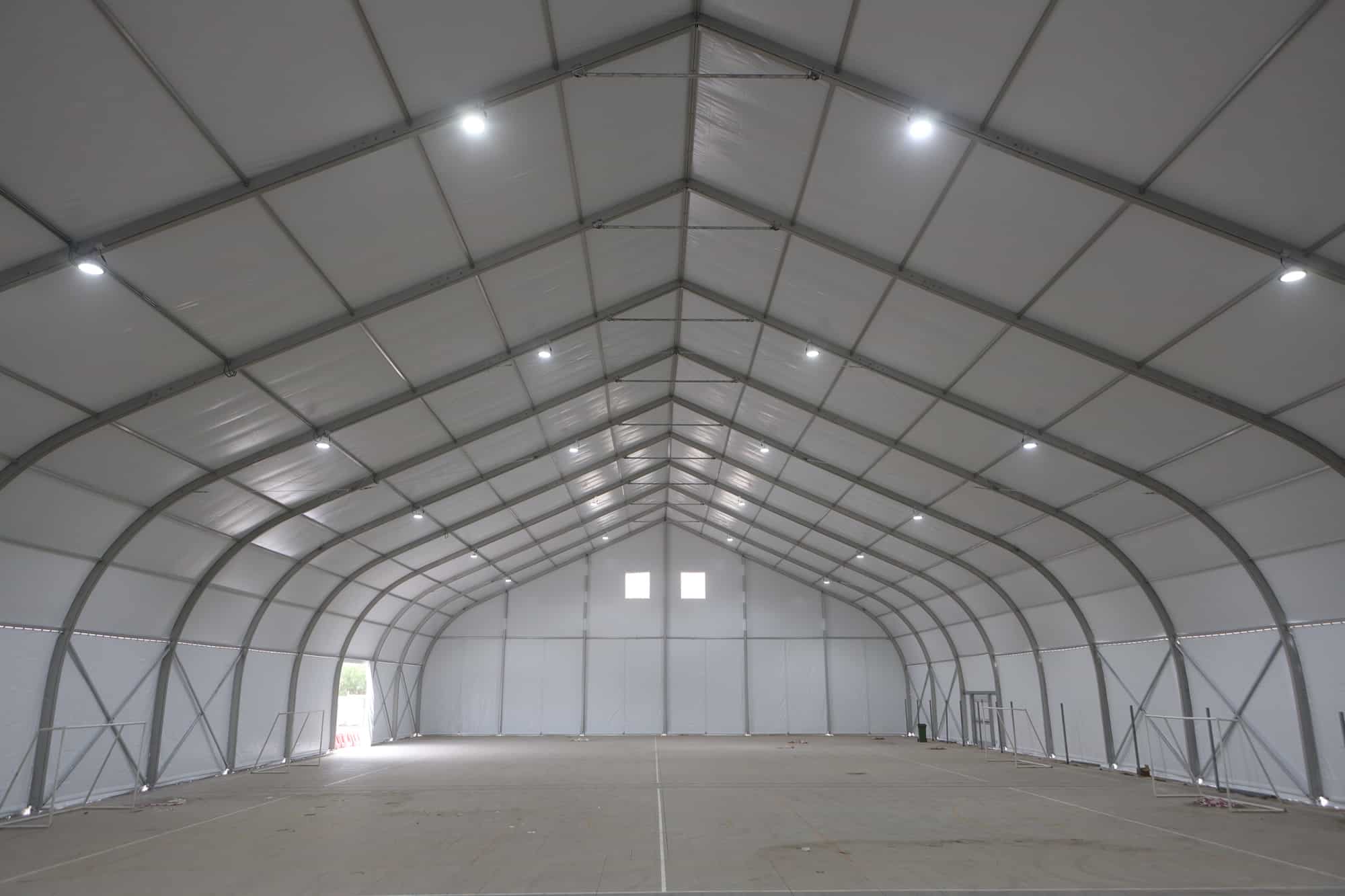 Presentamos nuestra nueva estructura modular curva de 2.000 m², especialmente diseñada a la medida para cubrir un espacio deportivo.