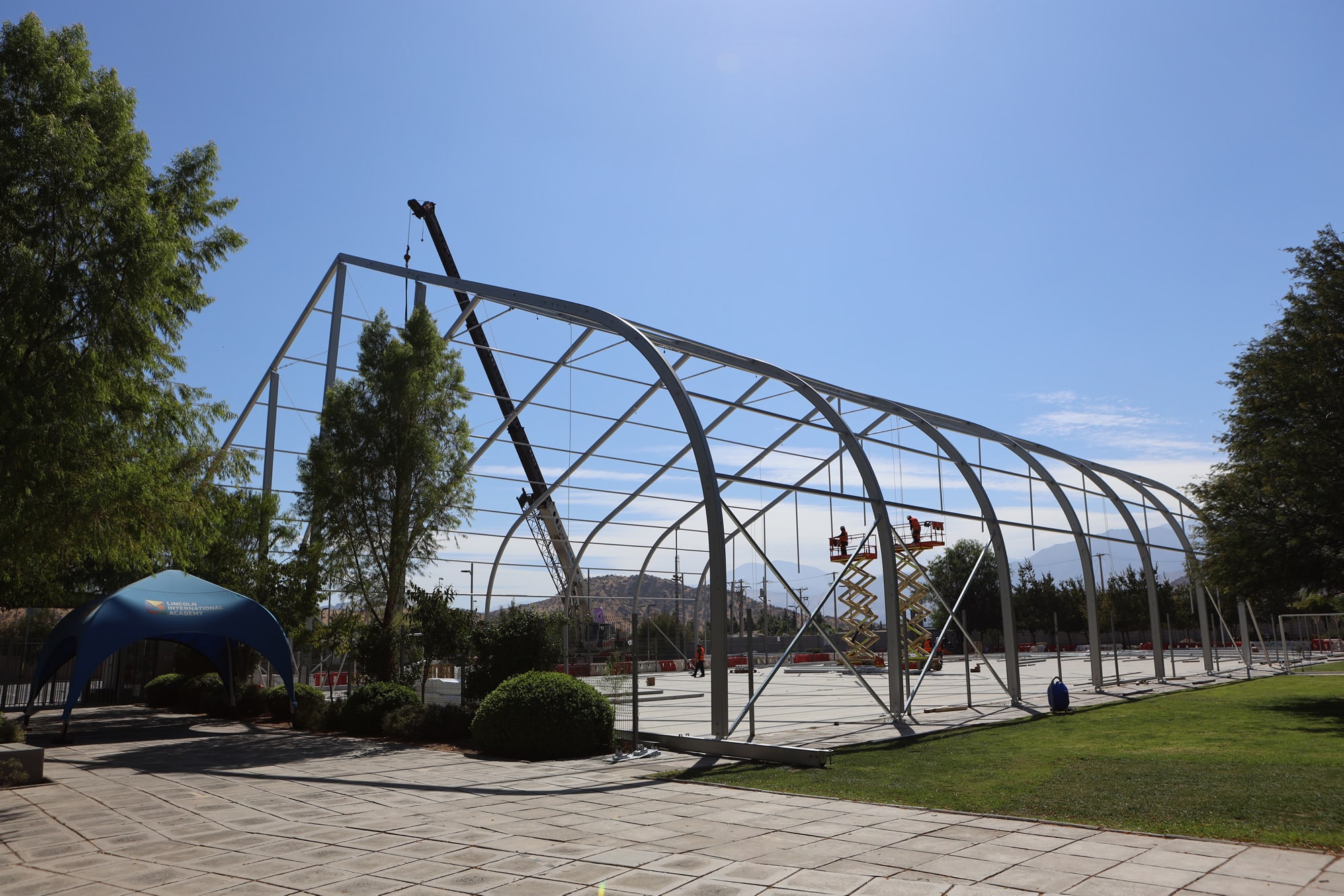 Una estructura flexible con techo y paredes de PVC 100% impermeable y filtro UV, que protege durante todo el año a los alumnos que realizan actividades deportivas en el colegio.